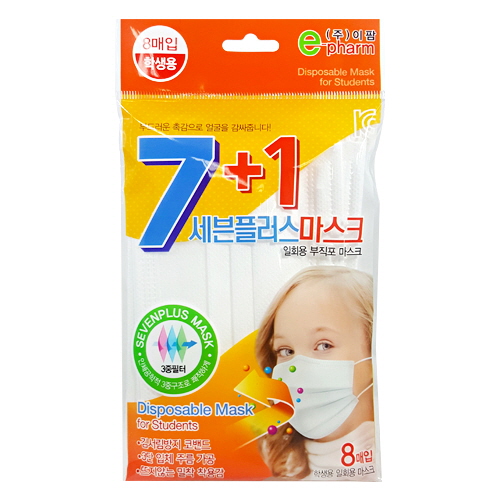 세븐플러스 일회용 부직포 마스크(학생용/백색) 8매 1EA