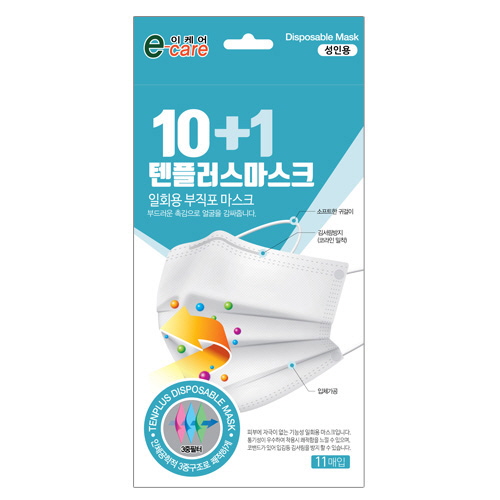 이케어 텐플러스 일회용 부직포 마스크(백색/10+1매기획상품) 11매 1EA